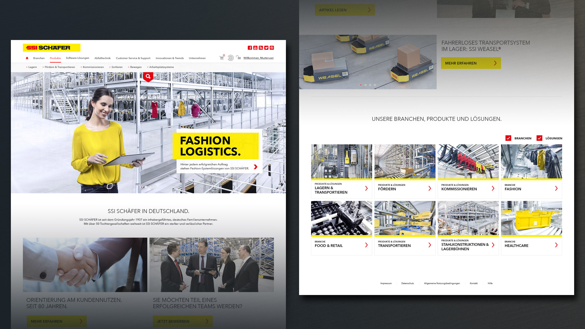 SSI Schäfer ist der weltweit leistungsstärkste Anbieter von Produkten und Systemen für den innerbetrieblichen Materialfluss, kurz der Intralogistik Riese. 2017 fand ein Rebranding der Kommunikationsmaterialien, zu denen damals Online- und Printmedien gehörten, statt: Ich verantwortete das UX/UI-Design aller digitalen Inhalte (Webseite, Microsites, VR-/XR-Apps). Zudem betreute ich im Zuge der Entwicklung und Weiterführung der Kampagnenmotive internationale Fotoshootings "on location" sowie im Studio.