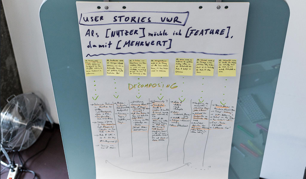 Als methodische Ergänzung zur Definition der Personas, setzte ich auf die Formulierung und das Decomposing von User Stories. Dabei kristallisierte sich schnell heraus, dass vorrangig Buzzwords wie „motorsportaffin“, „technikbegeistert“, „leidenschaftlich“ und „emotional“ verwendet wurden. Das Decomposing der Stories nutzte ich nicht klassisch zum Clustern der (technischen) Anforderungen, sondern als einen Ansatz zum kreativen Brainstorming auf Basis der User-Gains.