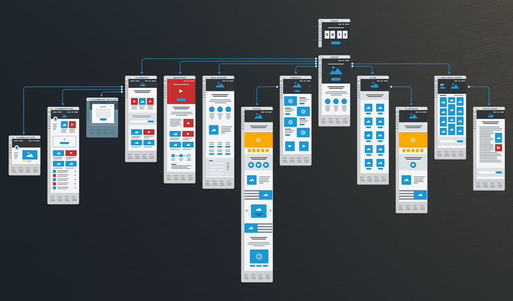 Ausgehend von den gewonnenen Erkenntnissen des Workshops modellierte ich mittels Card-Sorting eine sinnvolle 1st & 2nd Level Navigationsstruktur. Damit schaffte ich mir eine fundierte Grundlage zur Erstellung der Flow-Charts und meiner Low Fidelity Wireframes.